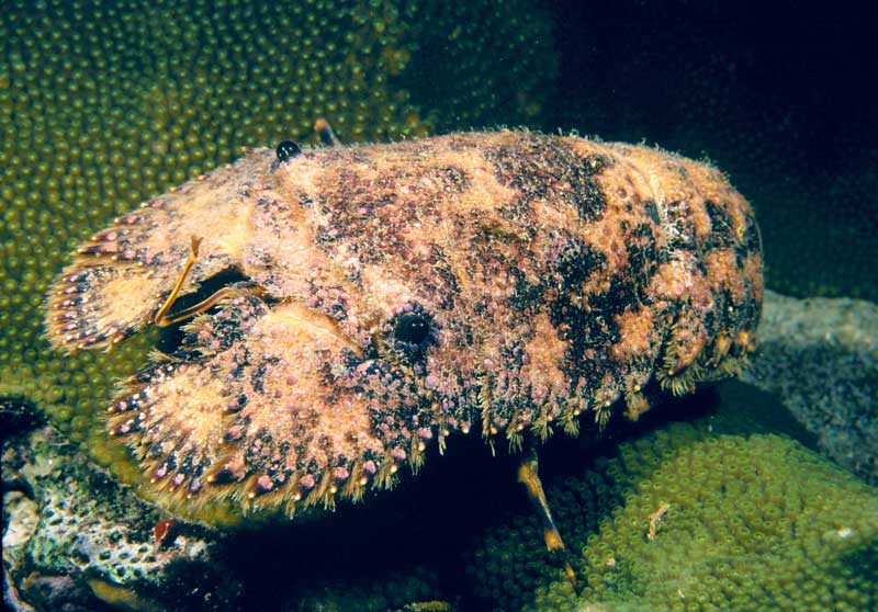 The Slipper lobster looks more like a giant underwater cockroach than a lobster. Its antennae have evolved into flat, shovel-like plates.