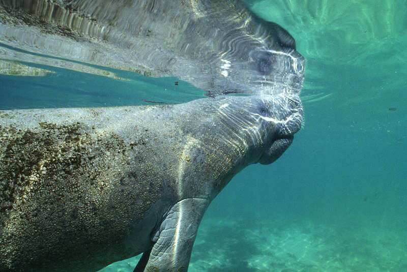 Manatees prefer shallow water, seldom diving more than 3-4 meters deep.